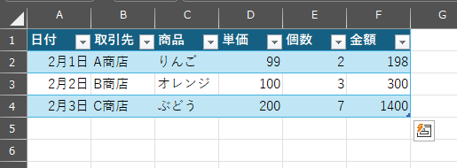 テーブル化の完了です。